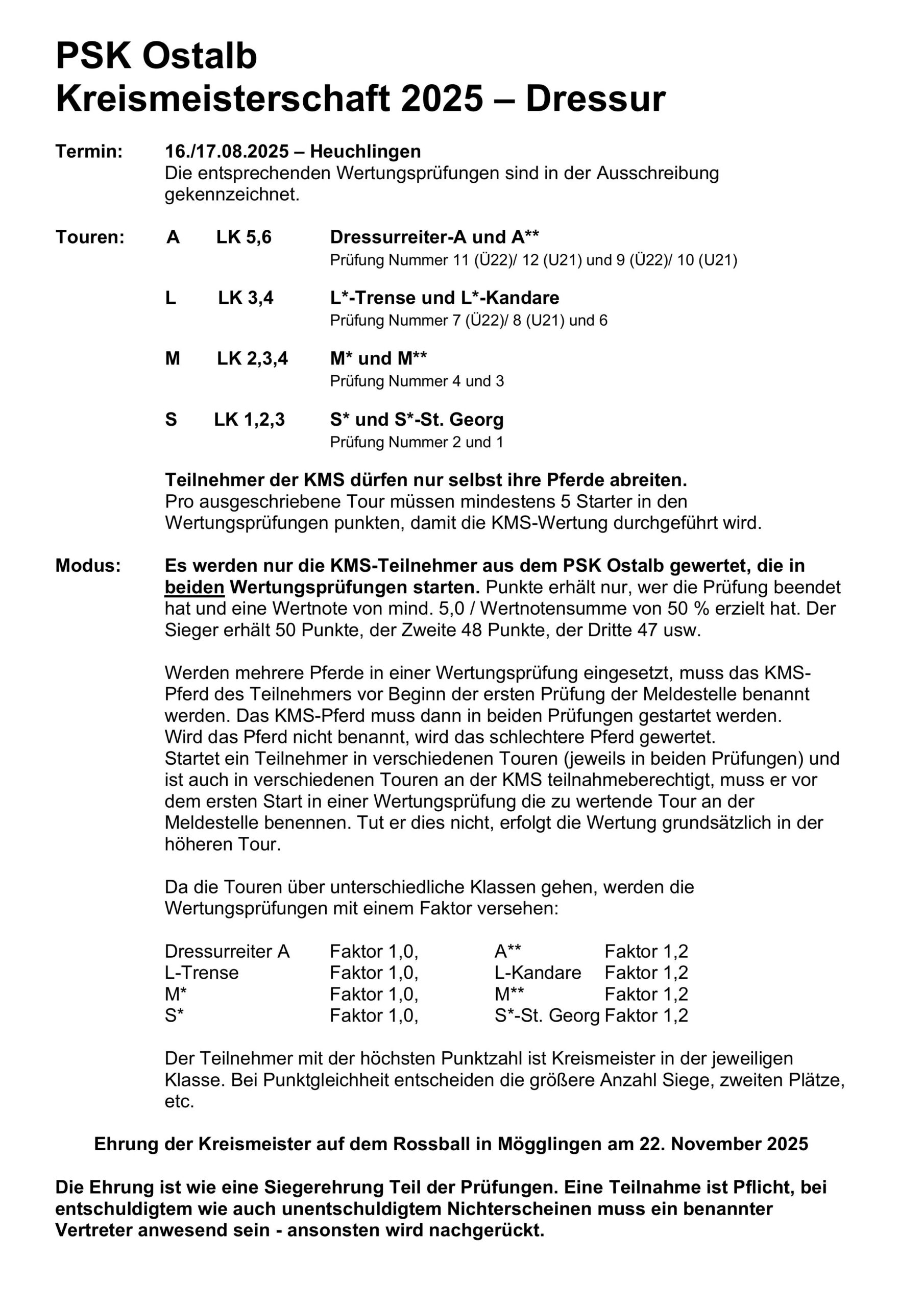 Bestimmungen Kreismeisterschaft 2025 – Dressur