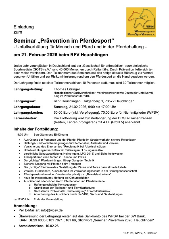 Seminar: 21.02.2026 – „Prävention im Pferdesport“