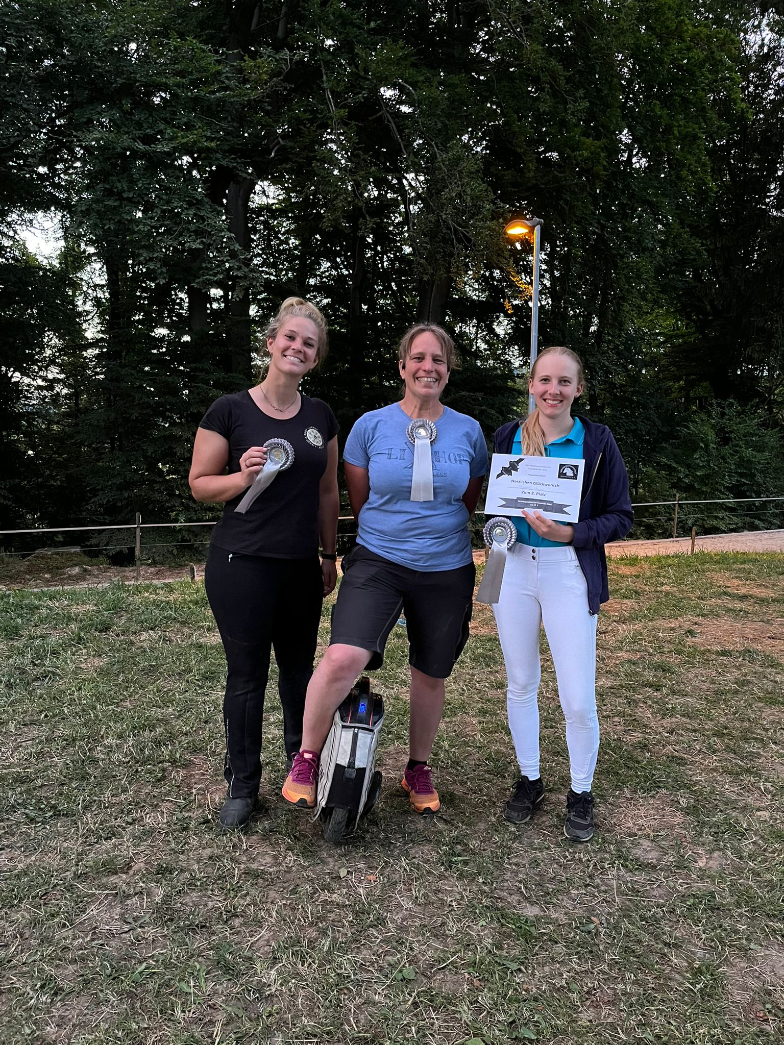 Im Rahmen des Aufmarschs aller Teilnehmer wurde außerdem Svenja Braun mit einer Ehrung überrascht: Für ihr großes ehrenamtliches Engagement im Bundesverband, insbesondere 17 Jahre Mitarbeit im Jugendressort sowie jeweils 8 Jahre im Richt- und Ausbildungsausschuss erhielt sie die silberne Ehrennadel des IPZV e.V. von des Landesverbandsvorsitzenden Anke Schwörer-Haag überliehen. Ganz herzliche Gratulation zu dieser Auszeichnung, wir freuen uns sehr über die Wertschätzung der ehrenamtlichen Arbeit.