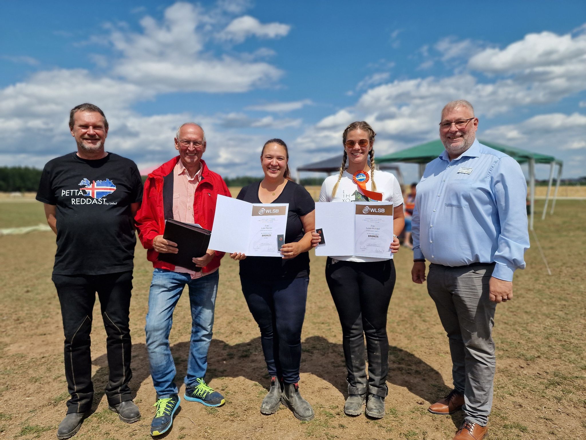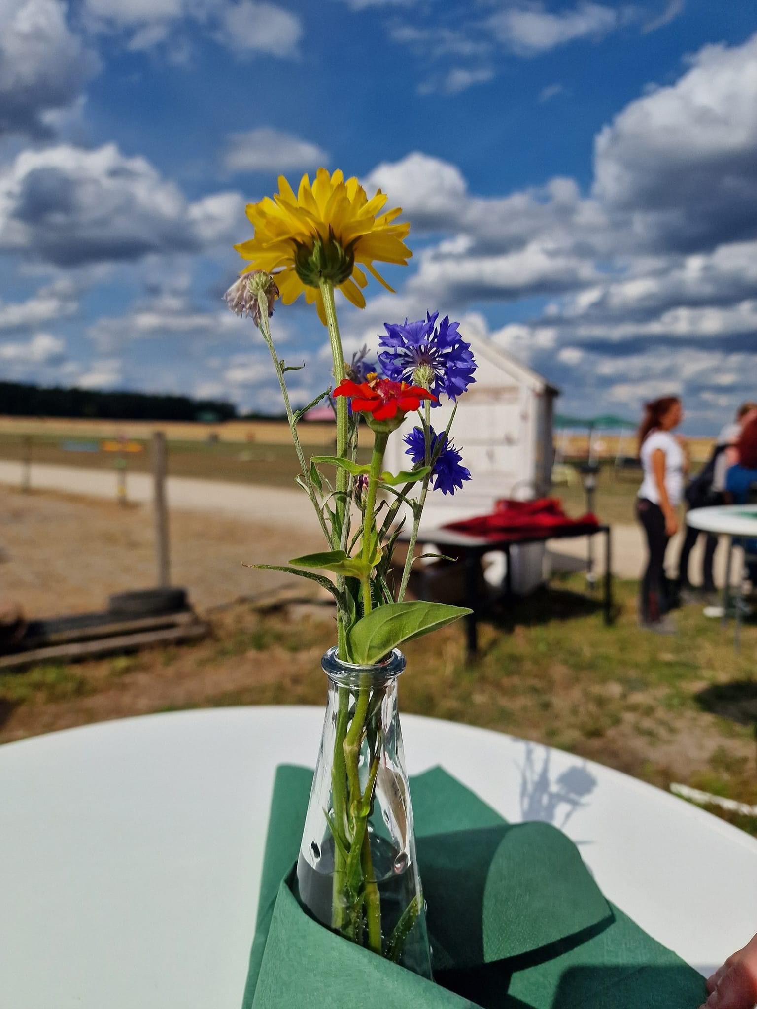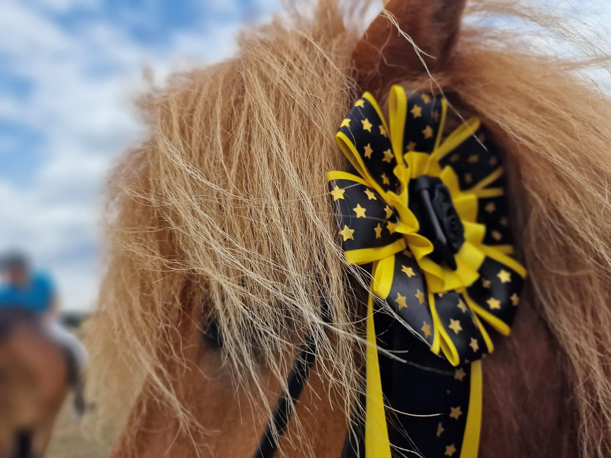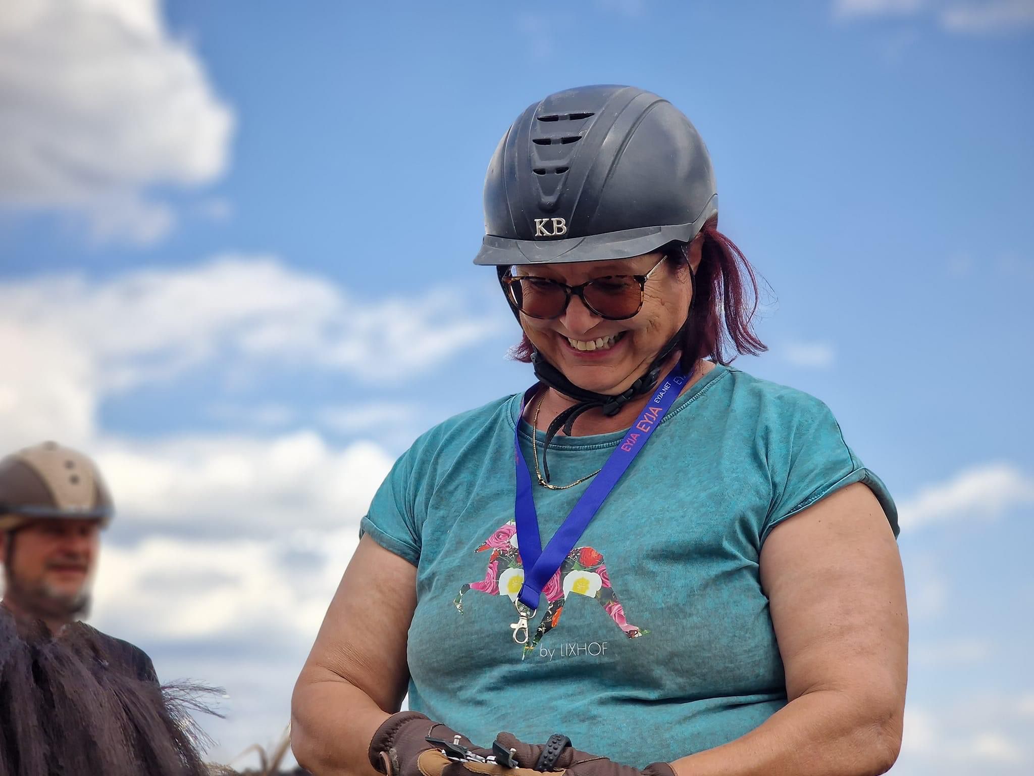 Alle paar Jahre wieder wollen wir das Islandpferd, unseren Verein samt Mitgliedern und unsere Hofgemeinschaft feiern. Dann ist es mal wieder Zeit für ein Hoffest. Die Planungen für das diesjährige Sommerevent begannen bereits vor über einem Jahr. In zahlreichen Online- und Vor-Ort-Besprechungen im kleinen Kreis sowie mit den hilfsbereiten Vereinsmitgliedern diskutierten wir über das Programm zur Kinderbetreuung, die gewünschten Hestadagar-Wettbewerbe, welche Sponsoren man ansprechen könnte, wie das kulinarische Angebot aussehen soll, und vieles mehr. Ein heikler, aber besonders wichtiger Punkt ist stets die Terminfindung. Wann sind Turniere im Umkreis, wann haben wir selbst ein freies Wochenende im Kalender, wann sind Sommerferien, wann wird das Wetter voraussichtlich am besten passen…Wir entschieden uns für den 22. Juli. Zutatenmengen kalkulierten wir gemeinsam, bestellten Getränke, eine mobile Toilette, entwarfen außergewöhnliche Schleifen, sammelten Sachpreise für die Wettbewerbsteilnehmer und die Tombola, planten das Kinderprogramm und machten Probeläufe unserer Verpflegungsideen. In der Woche des Festes war dann der große Hofputz angesagt. Aufräumen, aussortieren, ordnen, umstellen, putzen, aufbauen… Auch hier fanden sich immer wieder engagierte Vereinsmitglieder ein, die bereits im Vorfeld mit anpackten. Am Samstag war dann alles bereit: Pavillons waren aufgebaut, Gemüse für die Flammkuchen und Baguettes geschnitten, Kaffee und Kakao für Eisgetränke kaltgestellt, die Tombolapreise mit Nummern versehen, der Roundpen war zum Kinderparadies geworden, mit Blumen dekorierte Sitzgelegenheiten luden im Inneren der Ovalbahn zum Zuschauen und Verweilen ein. Morgens trudelten zahlreiche Helfer sowie Teilnehmer von auswärts ein. Jeder Helfer hatte seine Aufgabe zugeteilt bekommen und die Kuchentheke füllte sich zusehends mit selbstgebackenen Leckereien. Bei blauem Himmel und einer angenehmen Brise ging es am Vormittag mit den ersten Wettbewerben los. Über den gesamten Tag hinweg liefen Tölt- und Gangwettbewerbe, die den Zuschauern demonstrierten, was die Islandpferde ausmacht. Gespickt hatten wir das Programm mit einigen Geschicklichkeits- und Geschwindigkeitswettbewerben, die leicht verständlich sind und Teilnehmer sowie Zuschauer unterhalten und für den ein oder anderen gemeinsamen Lacher sorgten. Beim Fahnenrennen ging es heiß her, auch Shetty Max war mit von der Partie und musste sich mit seinen deutlich kürzeren Beinen gleich doppelt anstrengen. Der Wettbewerb Blinder Führer sorgte für viele amüsante Momente, wenn die Pferdeführer mit verbundenen Augen vom Reiter angewiesen wurden, das Pferd um eine Tonne, durch ein Stangenlabyrinth und über eine Plane zu führen. Das eine Team marschierte quer durch das Labyrinth, beim anderen verfehlte das Pferd komplett die Plane, wieder andere verirrten sich in die komplett andere Richtung des Parcours… Ein herrlicher Wettbewerb für alle Teilnehmer mit hohem Unterhaltungswert für die Zuschauenden. Das Double Race verlangte den Reitern Taktik und Einfühlungsvermögen ab, wenn sie versuchten, eine vorgegebene Strecke mit Wendung zweimal in möglichst identischer Zeit abzureiten. Beim Aufmarsch aller Teilnehmer durfte sich jeder über eine Teilnehmerschleife freuen. Hohen Besuch bekamen wir von Hans-Peter Ruberg vom PSK Ostalb und Christian Ziegler vom Sportkreis Ostalb, die extra gekommen waren, um Lena und Ari für ihr langjähriges Engagement im Ehrenamt unseres Vereins mit je einer Urkunde und einer Ehrennadel zu würdigen. Ein besonderer Moment in der Ovalbahn!