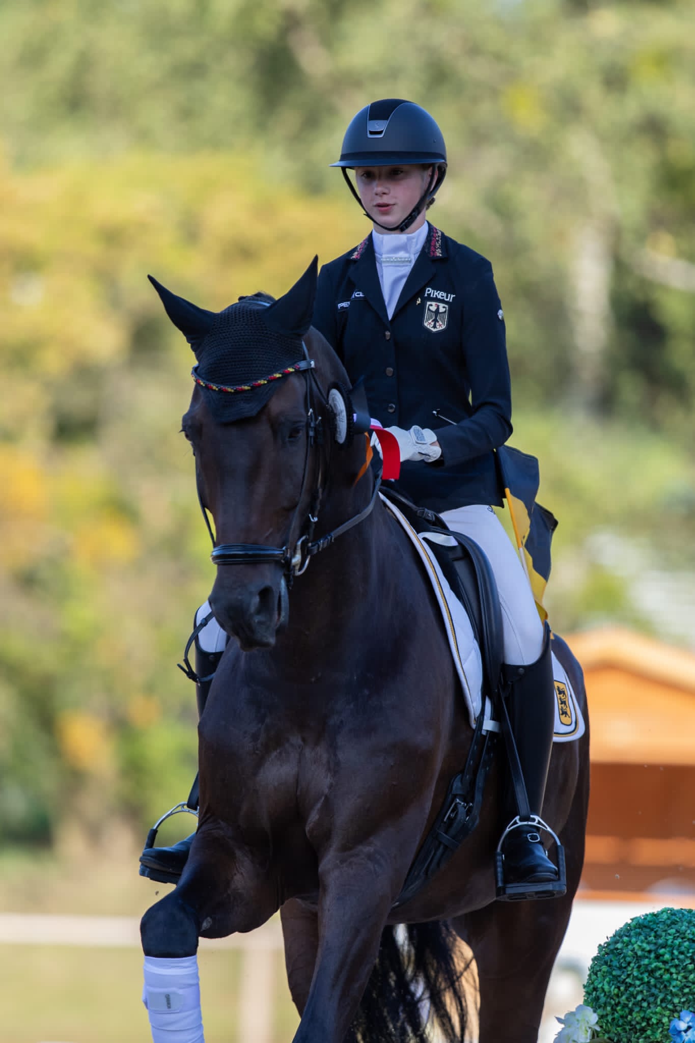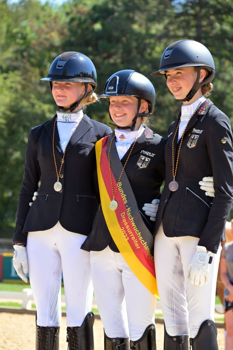 Das Bundesnachwuchschampionat Dressur findet seit Jahren im Rahmen der Deutschen Jugendmeisterschaft statt. Die frischgebackene Europameisterin Marie Bernhard zog mit Ihrem For Rock ins Finale ein und überzeugte hier mit viel Übersicht, einem sehr guten Sitz und gefühlvoller Einwirkung.